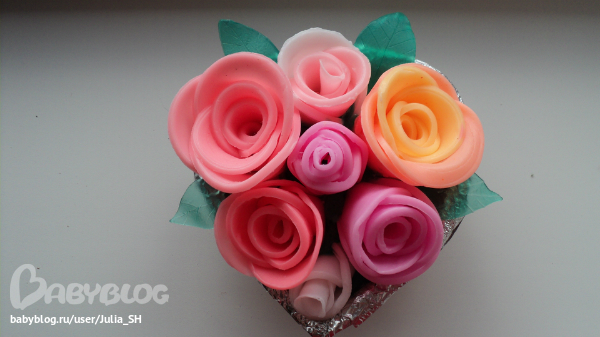Спасибо, Оленька, наверное лепестки маленькие сделала, они отдельно от розочек залиты, потом сфотографирую сбоку и выложу
