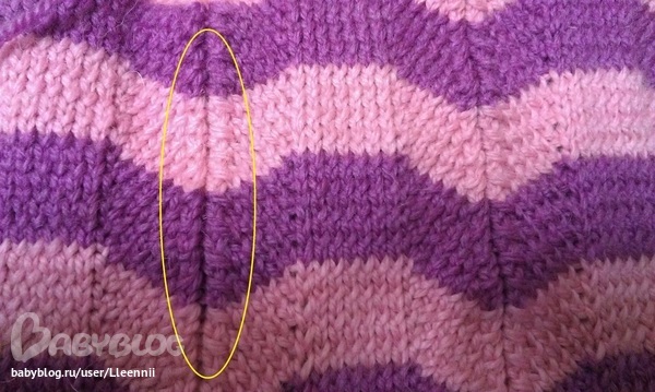 Доброе время суток! Девочки помогите разобраться.. Решила доче кофточку связать вот такую (полосатая котороая). спинка, 2 планки и рукова вяжутся отдельно волнистым узором. спинку я благополучно связала, а вот полочку ни как не могу, плывет узор и всё, каждый лицывой ряд на одну петлю всё сдвигается