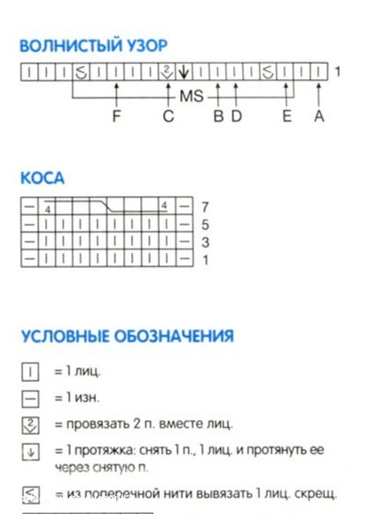 Полочка: кромочная, 2 лиц., из поперечной вывязываем 1 лиц. скрещенную, *1 лиц., из поперечной вывязываем 1 лиц. скрещенную, 4 лиц., 1 протяжка, 2 вместе лиц., 4 лиц., из поперечной вывязываем 1 лиц. скрещенную* - то, что между звездочками вяжешь 3 раза, далее 3 лиц., кромочная.