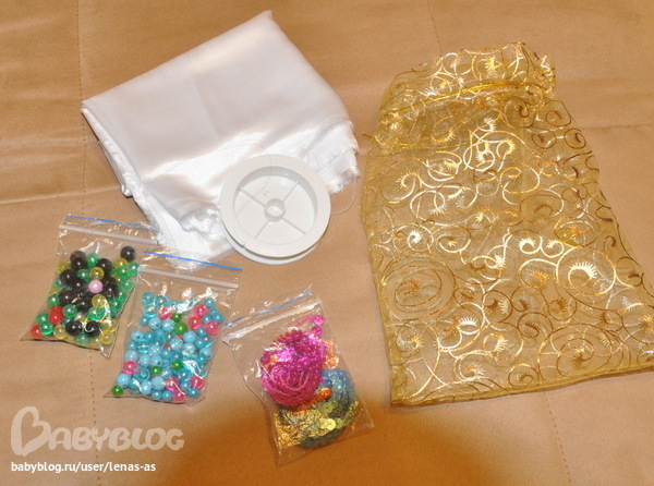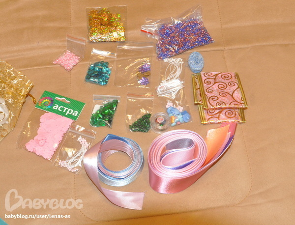 а это во втром пакете)тканюшка чудесная,спасибо Светуль,бусинки,паетки на нитках и леска.....