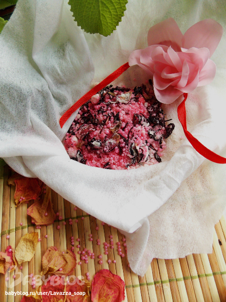 "красный"-расслабляющая уходовая ванна красоты. Основа-красный чай, каркадэ. + сливки, молоко, морская соль, розовый бисер, лепестки розы. Аромат: сливочная клубника+французская ваниль.