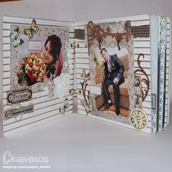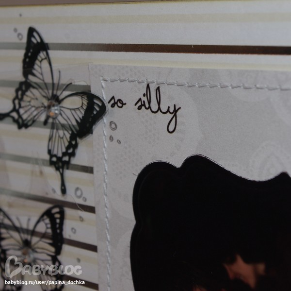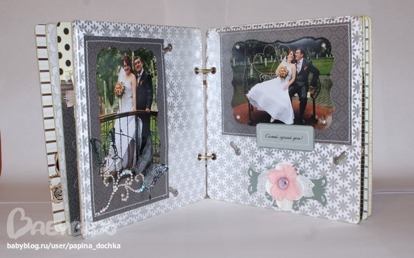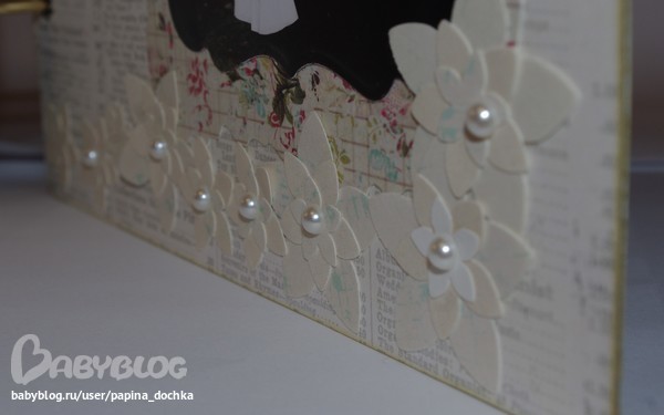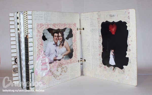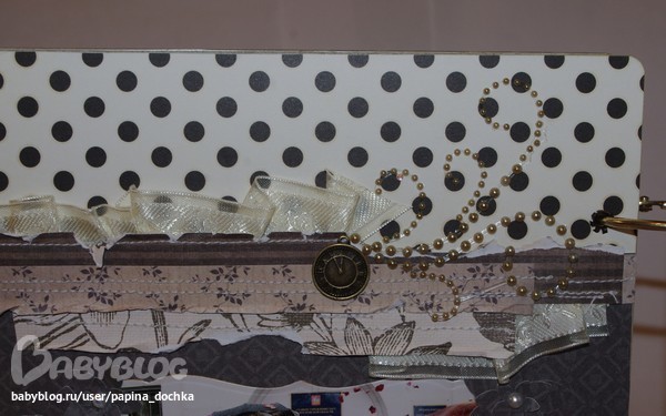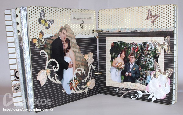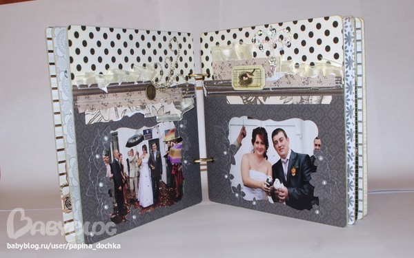СкрапбукингАктивно использовала чёрный цвет. В этом альбоме он мне навевал не трагичность, а торжественность. да и фоновая бумага настолько яркая, что нужно было её чем-то глушить...