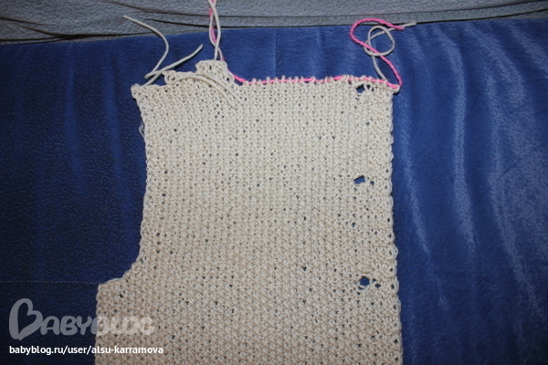 Девочки, у кого какие успехи? Я в последнее время вязала только когда младший купался - круг на шею и на заплыв, а сама рядом на стульчике))) Поэтому успехи у меня такие - спинка, 2 полочки и один рукав до проймы довязала.