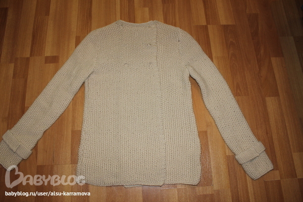 Вобщем девочки отчитываюсь! Спинку связала, постирала, отпарила. Петли набирала с учетом образца, который тоже предварительно постирала и отпарила. Получилась идеально по размерам, с учетом припусков на швы и я по 1 см делала больше с каждой стороны, чем готовая вешь. Хотя когда вязала, она была уже и я все время сомневалась, что мало будет.