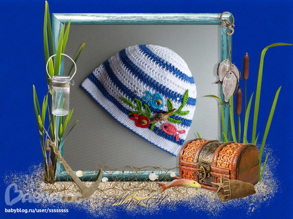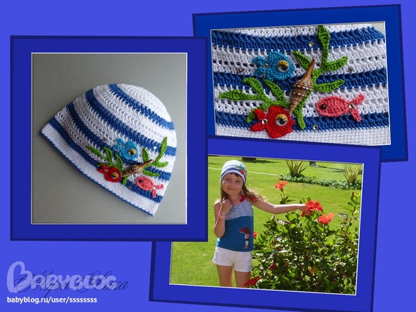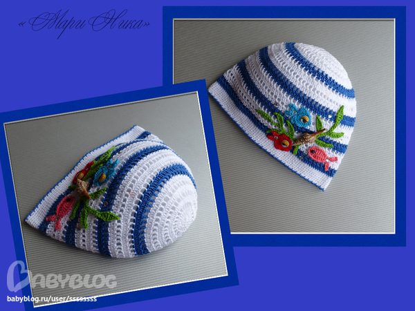 Всем приветик! Еще в мае, для поездки на море, связалась шапочка в морском стиле!