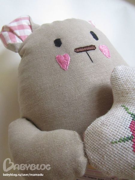 Игрушечный мир - животныеРодилась маленькая.... мышка? Даже и не знаю кто у меня получился, но этот кто-то вполне себе здоровенный с безумно большим сердцем, в котором навсегда июль... Почему июль? Потому что именно в июле цветет шиповник :) И лето живет в ее глазах :) Ах да, это подушка :)