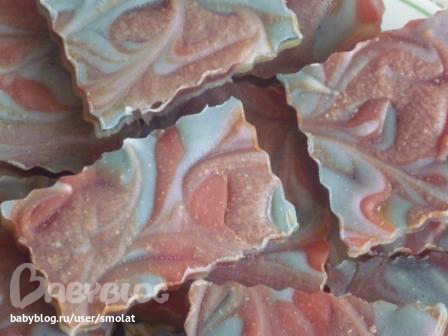 А мне нра твои свирлы! Я вчера цветы делала, красила пастами, цвета ооооочень поблекли,даже выкладывать не буду, в след раз буду красить натур красителями, типа глины.куркумы и т.д. А еще я мыло запорола, бухнула отдушку, один вжик и стоит как кол! Не, я конечно знала что отдушка ускоряет след. но что б настолько)) Терь только эфирки, да и вообще раз уж нулевка пусть будет все натур)