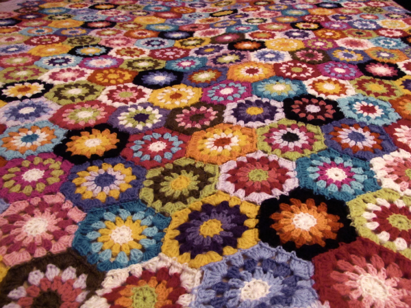 Наконец-то довязала третий плед из этой серии шестиугольников))) Ура! 345 мотивов, размер 170х200 см. Шерсть, 400м/100 гр. На фото немного искажен цвет, в реальности ярче и сочнее.