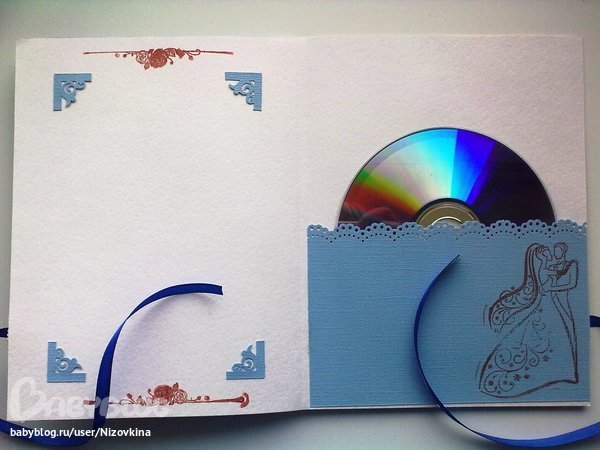 Конвертик для диска на заказ, гамма определена заказчиком. Впервые пробовала дырокольчик для уголков фото, а также штампики новенькие свадебные и кружево.