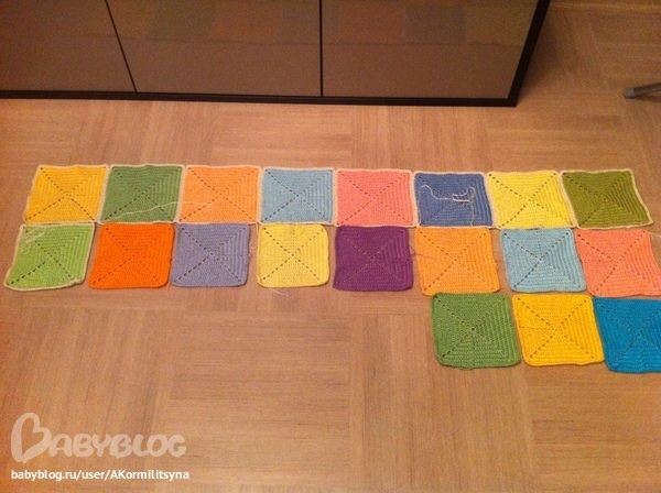 это все столько времени требует, в вчера полтора часа раскладовала и совмещала эти квадраты, прибежал Ванек и давай ими кидаться и прыгать...