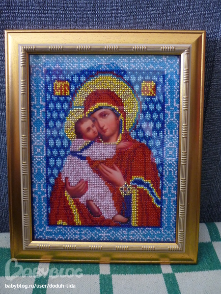 а у вас нет крупнее фото второй иконы, хотелось бы рассмотреть есть ли между бусинами при пришивании растояние, основа просмотривается. Присматриваюсь к этой иконе...думаю купить.