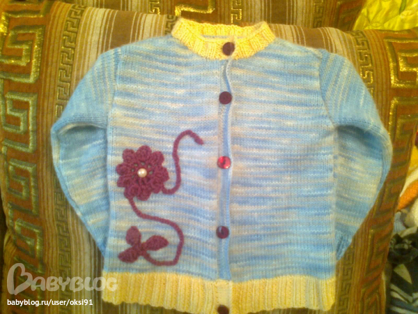 Очень хороший подарок! Связанно ровненько и не подумаешь, что это ручная вязка... Я думаю, будущей хозяке кофточки она очень понравится и она будет носить её с удовольствием!