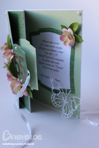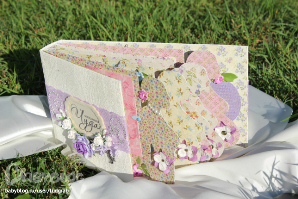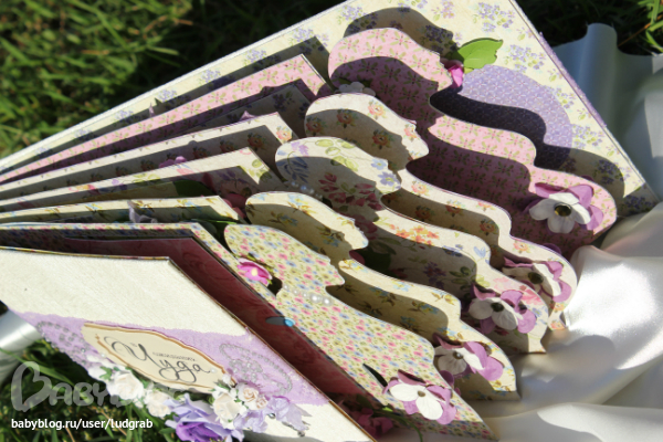 альбом в коробке с бантами, сфотографировать не успела, нужно было срочно отдавать. больше фото в моем блоге (позже напишу там пост об этом альбоме, и поделюсь ссылкой)