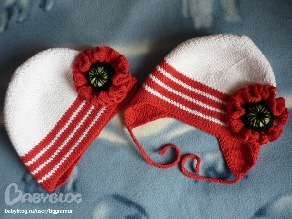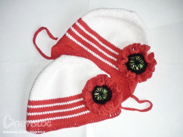 шапочки связаны одинаково, с макушки, использовала обычную схему прибавок (законы плоского круга). все связано столбиками без накида, так плотнее. вязать с верха до нужного диаметра донышка, далее вяжется без прибавок, только чередовать цвета)