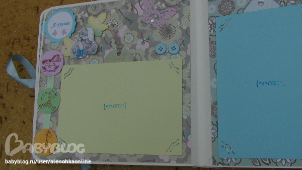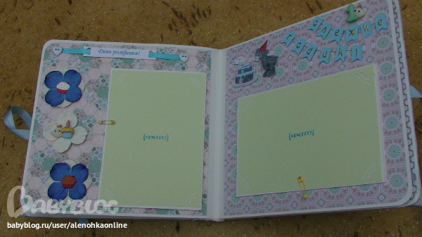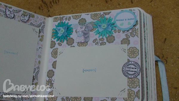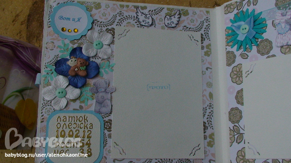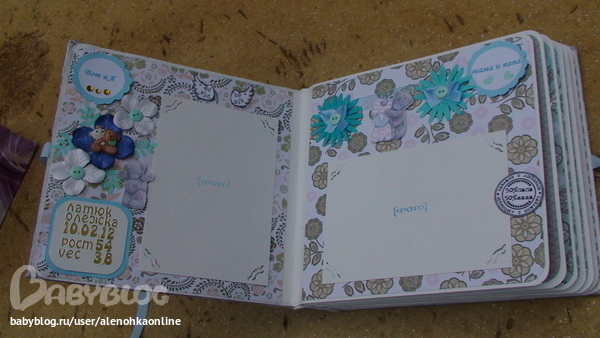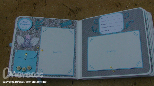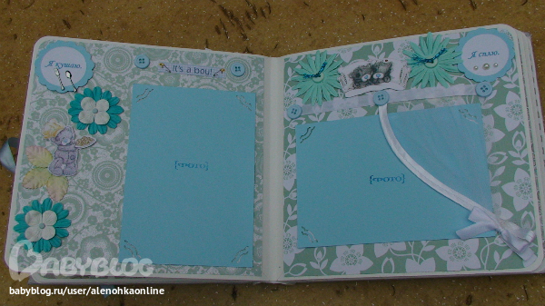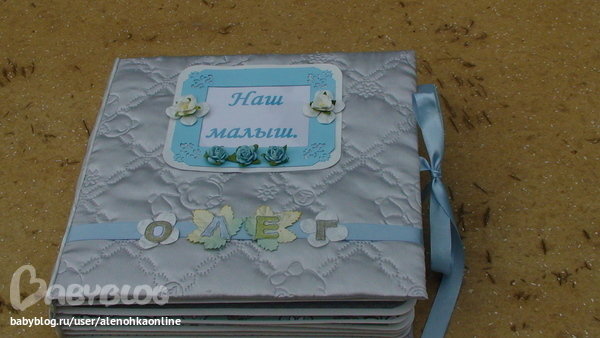 СкрапбукингМой по счету альбом № 4, это мой первый заказ, очень похож на мой предыдуший альбом для девочки, заказчице он понравился, и она заказала похожий для мальчика. Альбом в тканевой обложке 20*20, 14 страничек, 26 фото 10*15. в альбоме используются цветы , листики, пуговици, стразы, булавки, наклейки, украшения, ленты,и мои распечатки.Дальше фото альбома.