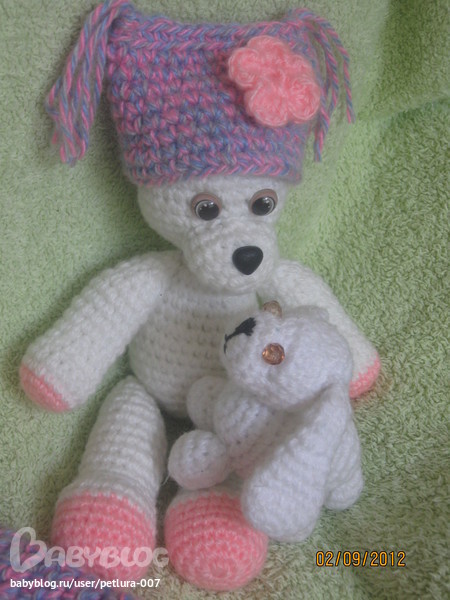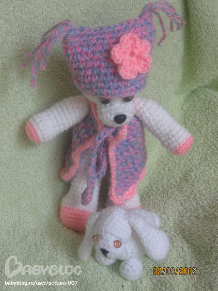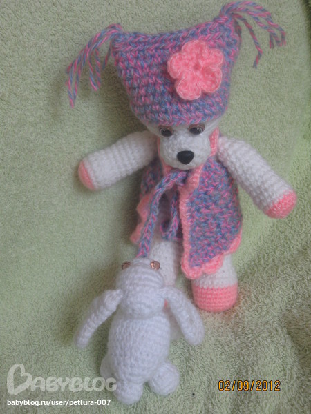 Игрушечный мир - животныеПоедет к одной маленькой девочке)))))связана крючком шерсть+акрил...рост - 23 см..глазки и носик-пластик, набивка-холлофайбер