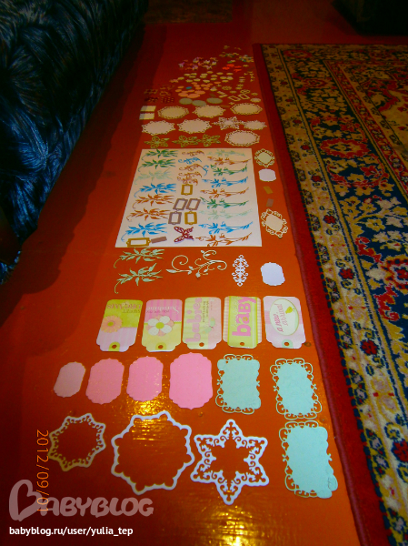 Заготовок хватит не только на альбом. Уже думаю об открытках, хочу еще болкнот сделать, куда буду записывать Катюшкины успехи, в альбоме будет кармашек для этого блокнота. Вобщем планы Наполеоновские)))))