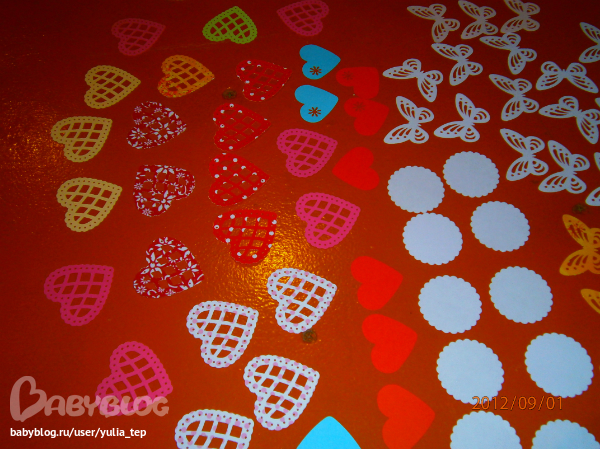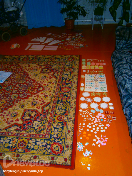 Сначала я хотела все по отдельности разложить на полу, но потом поняла, что зал у меня маленький и места мне не хватит)))