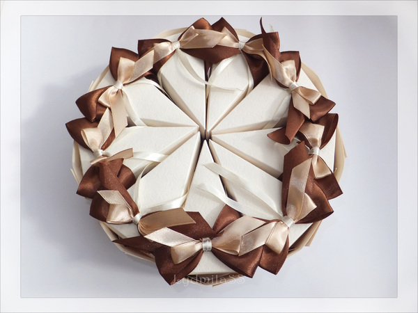 А это в упаковочке, коробочки сделала сама под размер кусочков торта: