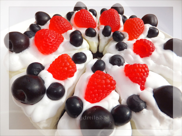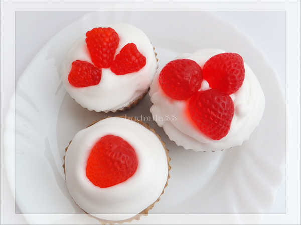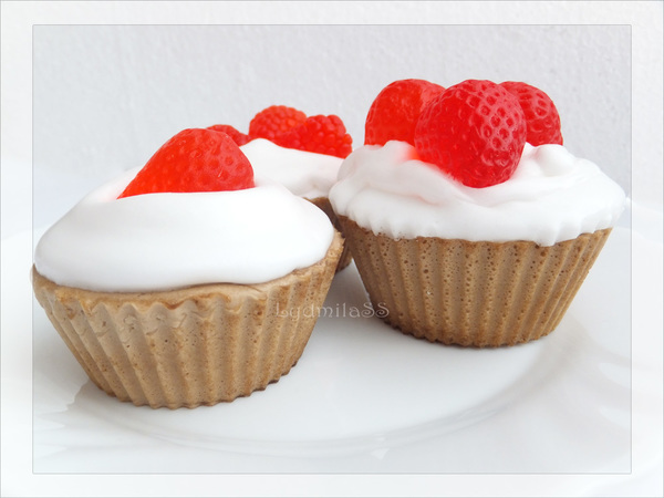 Супер!Мыльные сладости-моя любовь!!! Жаль, не сфотографировали вы трртик сбоку и в разрезе, мне кажется, было бы еще на сто попускать слюнки))) Кексы обалденные!!! 9еленый листик просится к ягоде, а текстура кекса и крем суперские!!!!