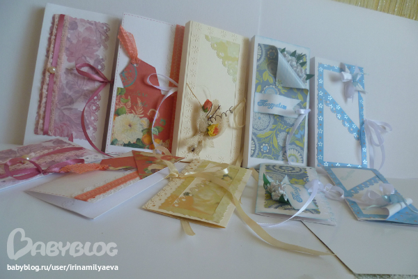 замечательные наборы получились!!! а я пробовала шоколадницы делать, но про открытки к ним даже не подумала))) возьму идею на заметку