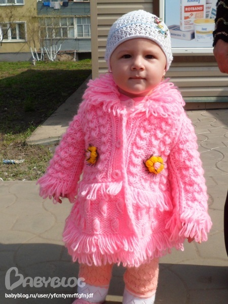 Эт точно!А у Вас сколько рядов получилось без резинки.Ваша дочка на 2 мес по старше,а у подруги она крупная.Примерно 11кг весит.Я ж в подарок,мне так на глаз вязать.А на Вашем примере думаю как раз подойдёт.