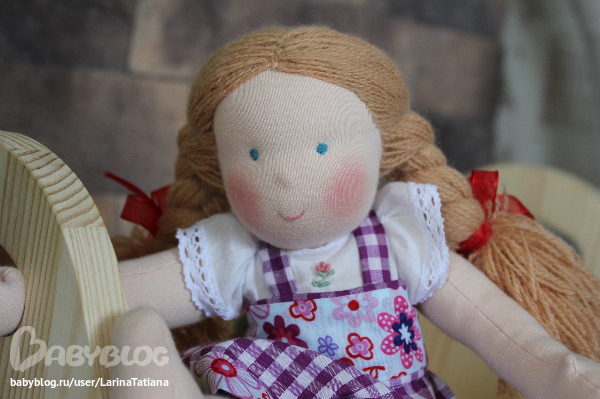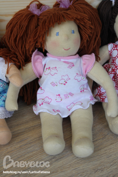 Девочки, здравствуйте! Я только вот на днях вступила в ваше (а теперь и мое) сообщество.... Вернее, даже завела свой дневник. Посмотрела я на ваши шедевры и решила тоже "прихвастнуть". Я с недавних пор стала увлекаться шитьем вальдорфских кукол, уж очень они мне запали в душу. Такие нежные, милые создания! Честно сказать, я раньше текстильных кукол вообще не признавала, в магазинах искала пластмассовых или резиновых их представителей... А теперь меня даже и не тянет в магазины игрушек, разве что для дочери кубики или какой-нибудь конструктор прикупить. А вообще-то, наверное в детстве я недоиграла в куклы. С рождением дочки столько хочется для нее сделать, видимо реализовать свои детские мечты. Благо, что в магазинах для рукоделия сейчас столько всего, аж глаза разбегаются!
