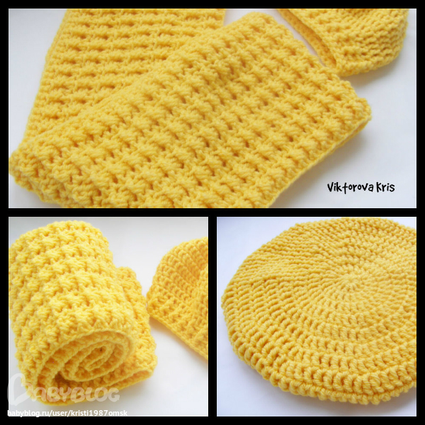 Комплект в сочном оттенке бананового цвета не оставит вас незамеченной этой осеннюю. Выполнен из полушерстяной пряжи, за счёт чего очень мягкий и тёплый. В состав комплекта входит шарф-снуд и берет. Длина шарфика 140 см, ширана 20см. Шарфик свзан вкруговую, за счёт длины можно складывать вдвоё.