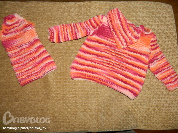 пряжа-Плюш, очень мягкая пряжа, нежная на ощупь. шапочка-косынка и кофточка.