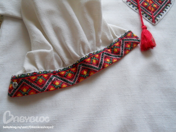 Здесь я взяла иголку первый раз))))) Вышилась довольно быстро. Крой как у мужской рубахи, только рукава снизу как бы фонариком. Ткань лен, и немного кусаестя.