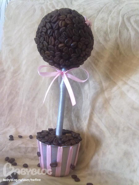В очередной раз убеждаюсь, что кофейные топиарии пользуются пбольшой популярностью у рукодельниц, т.к. всегда гармонично смотрятся в интерьере, потрясающе пахнут и не требуют больших финансовых затрат и времени.