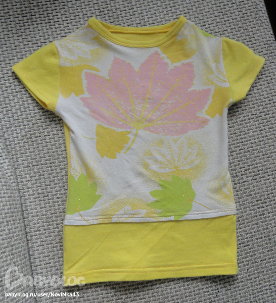 А эта футболка из остатков ткани. На ней я попыталась немного поэкспериментировать с красками )))