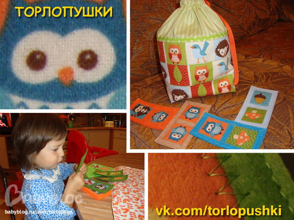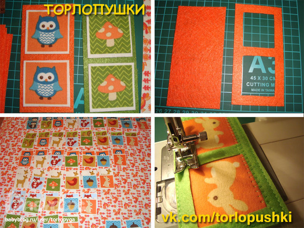 У меня не было достаточного количества фетра одного цвета, поэтому я использовала фетр различных цветов, в цветовой гамме фланели со зверюшками, фетровые прямоугольники пришивала вразнобой, чтобы нельзя было запомнить картинки по цветам фетра.