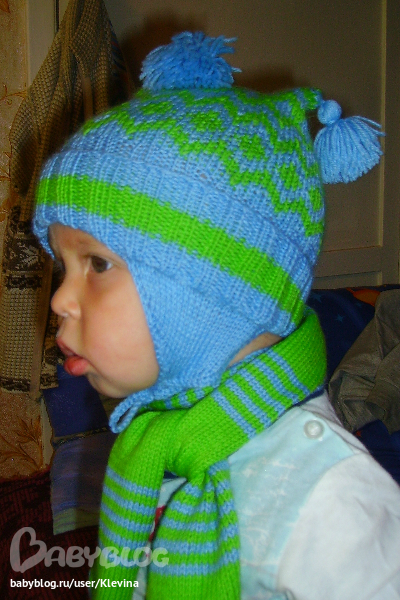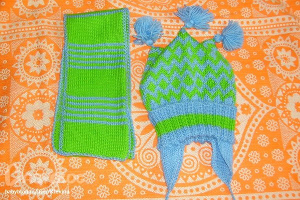 Принесли мне поддевку, которую я в прошлом году вязала внучке. Все хорошо, только Олежка крупнее Яси и на всю зиму Ясиной поддевы не хватит. Решила связать еще одну. Купила 300 грамм ниток - Пехорка детский каприз (60 процентов шерсти, 40 процентов фибры). Очень понадеялась, что хватит. Стала вязать, связала поддеву на рост 92 см. Нитки остались. Связала шапку. Нитки остались. Решила попробовать связать шарфик, но думала - ниток не хватит. Связала, хватило - шарфик обматывается вокруг шеи два раза и остаются кончики завязать. Вот такие волшебные нитки оказались - из 300 грамм поддева, шапка и шарф.