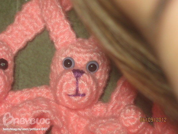 ой это намного тяжелее чем разных вязать)))))) у меня прям к концу работы в глазах рябило от розового)))) тем более моя творческая натура требует разнообразия)))) так что если еще раз и решусь-то только разноцветных)))))))))))))))))))))))))))