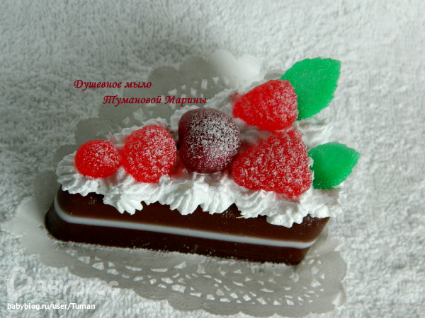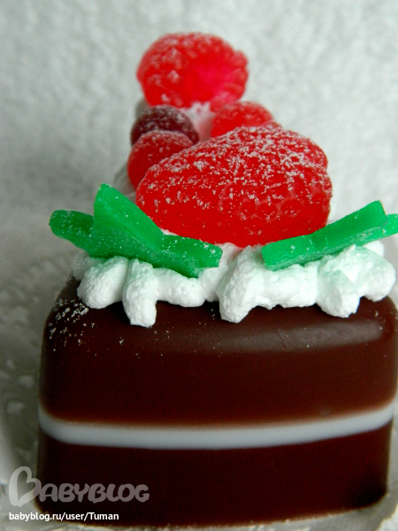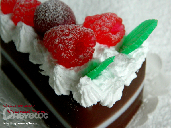 да-да, все из мыла и малинки и крем и листики. Только посыпка сверху это сахарная пудра)