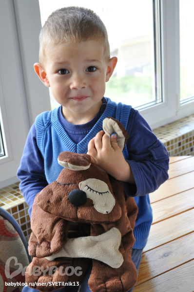 Днем туда можно складывать пижаму, игрушка незаменима при вирусной инфекции дыхательных путей, кашле, болях в мышцах. Достаточно положить внутрь мешочек с нагретой крупой. А еще он может стать с Вашей помощью волшебным и приносить малышу всякие вкусности и сладости.
