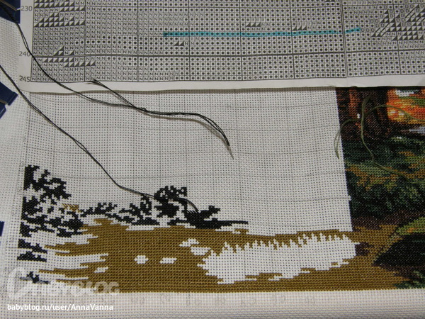 Ага следишь значит за процессом))))))))....ну ели..ели....вот скорость у тебя.....как ты так вышиваешь, ладно если б дома сидела, ведь то ж работаешь, семья, а все успеваешь.....