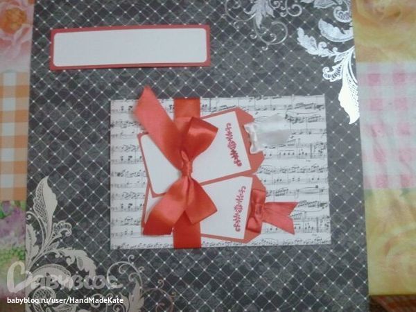 СкрапбукингВсем здравствуйте! Я начинающий скрапер. Это моя первая страничка в будущий альбом! Прошу оценить и откретиковать. Пока ничего не клеела. Вверху будет надпись, а бантик развязывается и там 2 фотки.