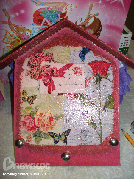 Елена в Рукоделие 13 лет Ключница Декупаж Я тоже её сделала,полностью с нуля Это ещё без лака А теперь с лаком Посмотрите еще 20 записей на эту тему Отменить Ответить Нонка Отлично! Я тоже хочу такую! 12.09.2012 Ответить Елена Так в чём дело? 12.09.2012 Ответить Нонка Так у меня ж не получится! Продайте или подарите! 12.09.2012 Ответить Елена Мы подумаем над этим вопросом 12.09.2012 Ответить Анастасия А заготовку тоже сами делали? 11.09.2012 Ответить Елена Да,это задняя стенка от шкафа,даже не фанерка,муж выпилил:) 11.09.2012 Ответить Анастасия Прикольно! 11.09.2012 Ответить Елена Спасибо! 11.09.2012 Ответить Вопрос для новичка... Шкатулочка Чаты Беременных Выберите чат: Январята-2026 Февралята-2026 Мартята-2026 Апрелята-2026 Майчата-2026 Июнята-2026 Июлята-2026 Августята-2026