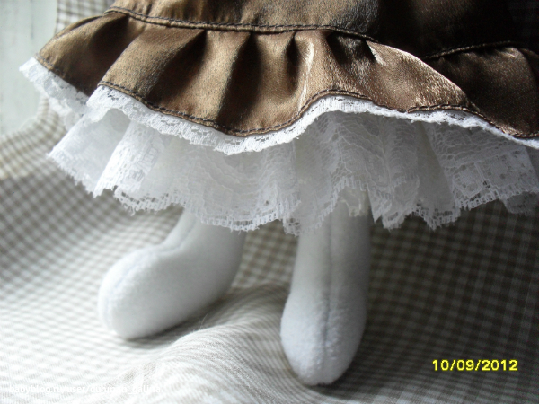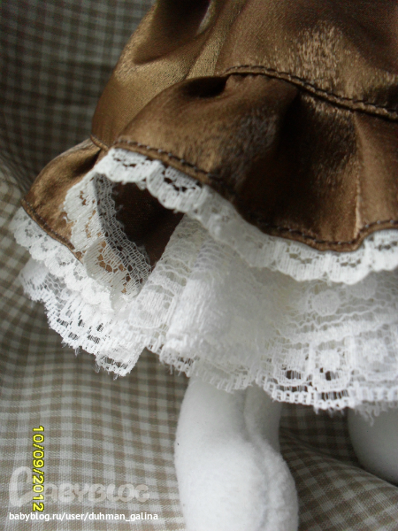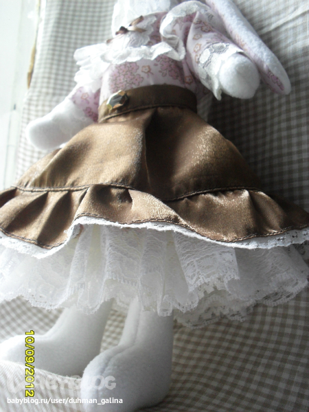В общем саму зайку я сшила на руках,и пока я была на работе моя мама решила её одеть))Либо потому что ей было скучно,либо из за того что я забыла закрыть сайт ТИльдомания)))В общем прихожу с работы и вижу такую красоту))Кружево,складочки...только укрошалки сама пришила,по минимому,ведь заюшка для игры)))
