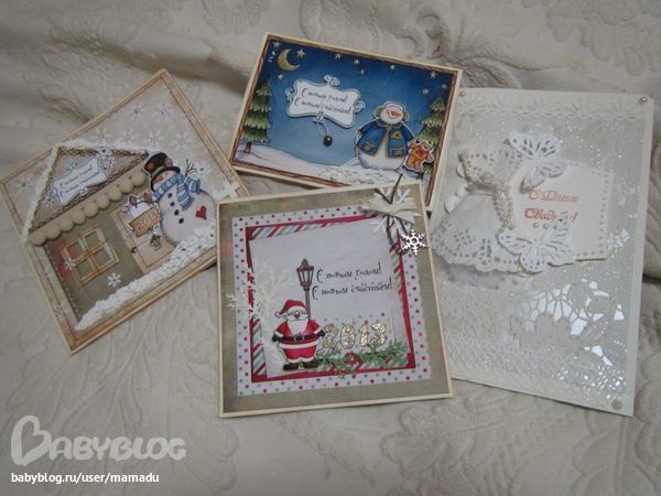 Открыточки толстенькие, тяжеленькие, все простроченные, с кучей всяких прибабахов прекрасных, но самое главное, Ася осуществила мою мечту: