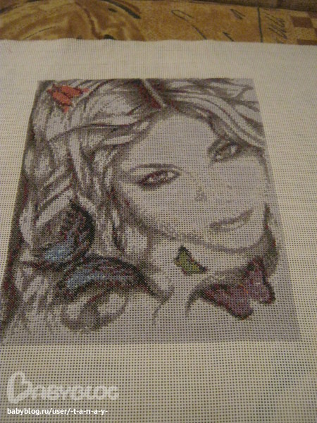 ой а моя целый год лежит и никак, совсем чуть вышила. можно вопросик а лицо у нее действительно с голубым оттенком? а то я уж сомневаюсь че получится