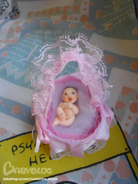 Девочки, знакомьтесь с новой малышкой! Моя подруга и коллега по цеху Юленька назвала ее Масяней, так что пусть это имя и останется, а там новая мамочка назовет по своему усмотрению)))) Мася слеплена из полимерной глины Фимо, волосики мохер, личико расписано акрилом. Ростиком Мася всего 4,5 см, она ну совсем кроха, поэтому большую часть времени проводит в своей розовой колыбельке, украшенной кружевами, бантиками и двумя очаровательными сосками-пустышками))) Длинна колыбельки 8 см. Но и в колыбельке она не спит, а внимательно смотрит на все вокруг и улыбается своей маме))) Кому приглянулась Масенька - пишите в личку, малышка ждет маму. У Масяни есть красивое свидетельство о рождении и нарядная коробочка, в которой она поедет к своей будущей маме. Принимаю заказы на пупсов по фото, примеры и отзывы у меня в дневничке. Всем приятного дня и хорошего настроения!