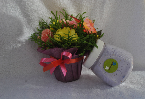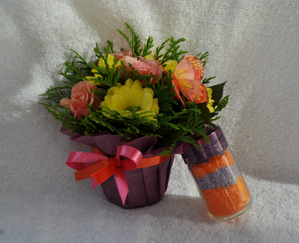 соль для ванны с эфирками бергамота (оранжевый) и лаванды (фиолетовый)