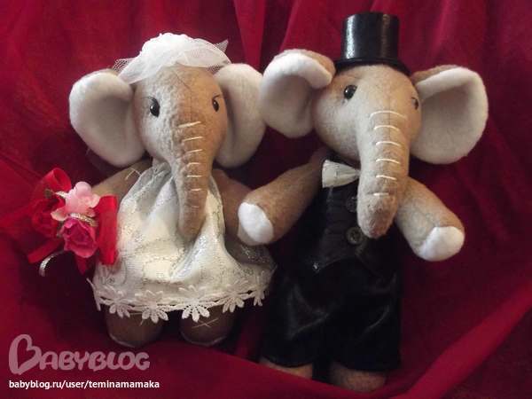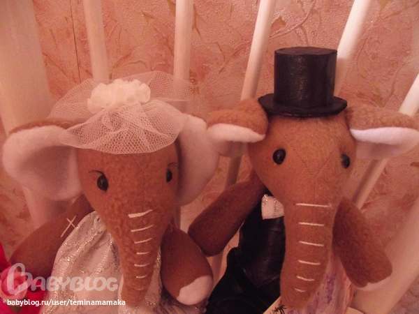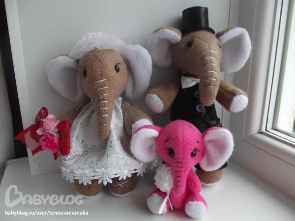 Игрушечный мир - животныеЗа две недели до свадьбы, я выкроила двух совершенно разных слоников на пробу, и вышла на работу! Две недели про них я не вспоминала! А за ночь до торжества, я бросила своих родных и любимых и все кроила, шила и клеила. Вот, что из этого вышло!