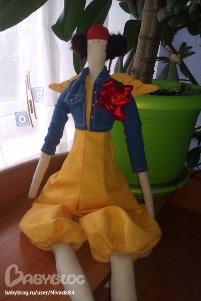 прикольная)) но вообще-то это не садовый ангел)) садовый в косыночке и комбезе)))) а эта куколка с птичкой в клетке))