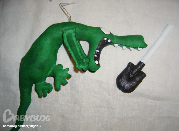 У вас получился замечательный крокодил, с юмором!!! Фраза отличная, её бы на лопате прописать! Лопату, кстати не сразу увидела.