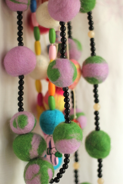 Все остальные пустила на бусы =) Получилось по две нитки зелено-сиреневых и розово-желтых и одни совсем детские с деревянными фигурками.