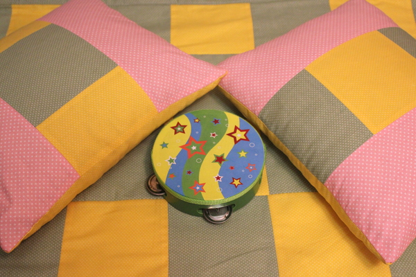 Ткани желтой и зеленой хватило тютелька в тютельку ) осталась лишь небольшая ленточка.